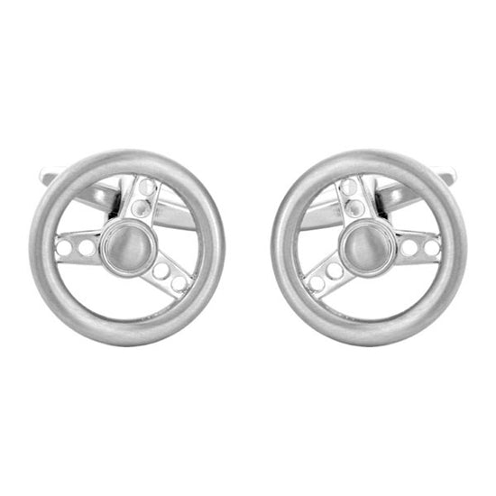 Ideal for those who like to be in the driving seat, these silver coloured steering wheel cufflinks are the perfect accessory to any drivers cuff. Whether he's an aspiring Formula 1 driver or just a motoring enthusiast, you'll be assured of having found the perfect gift with these cufflinks.